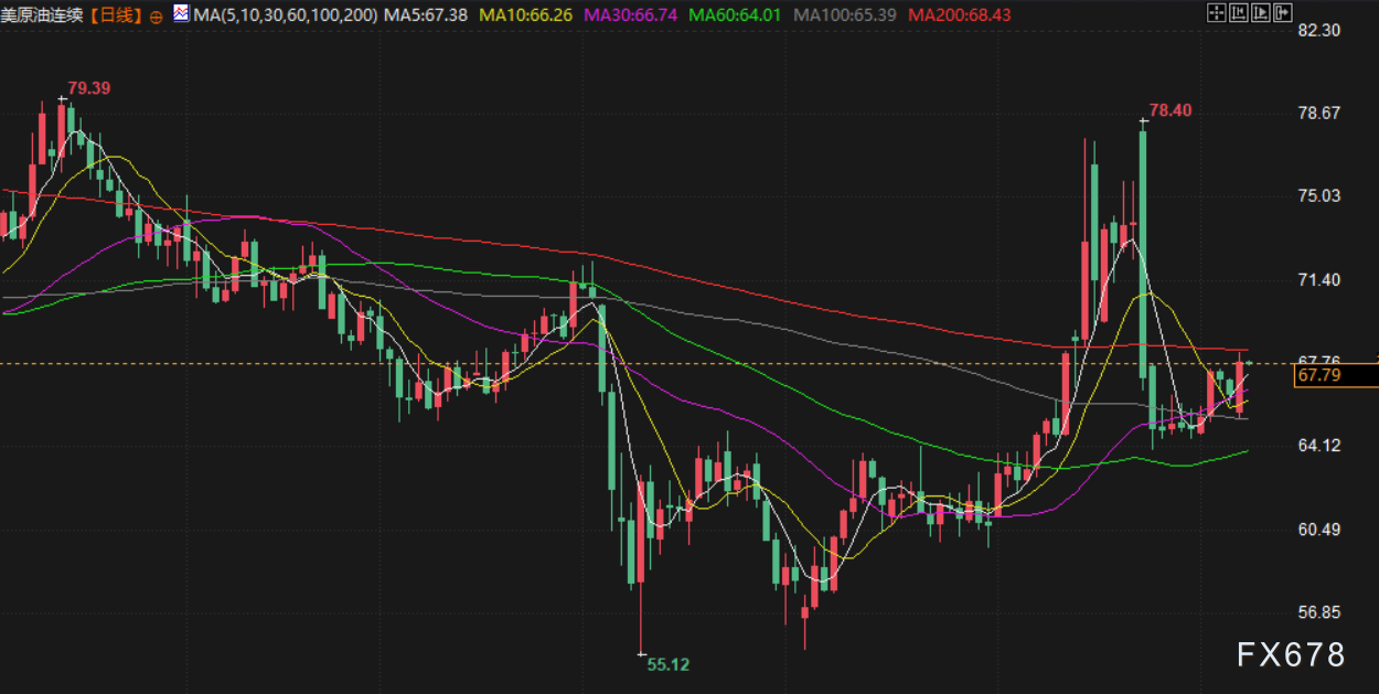 布伦特原油期货收涨1.9%,报69.58美元。美国原油收涨1.4%,报67.93美元。盘初,布伦特原油一度跌至67.22美元,美国原油盘中最低价为65.40美元。